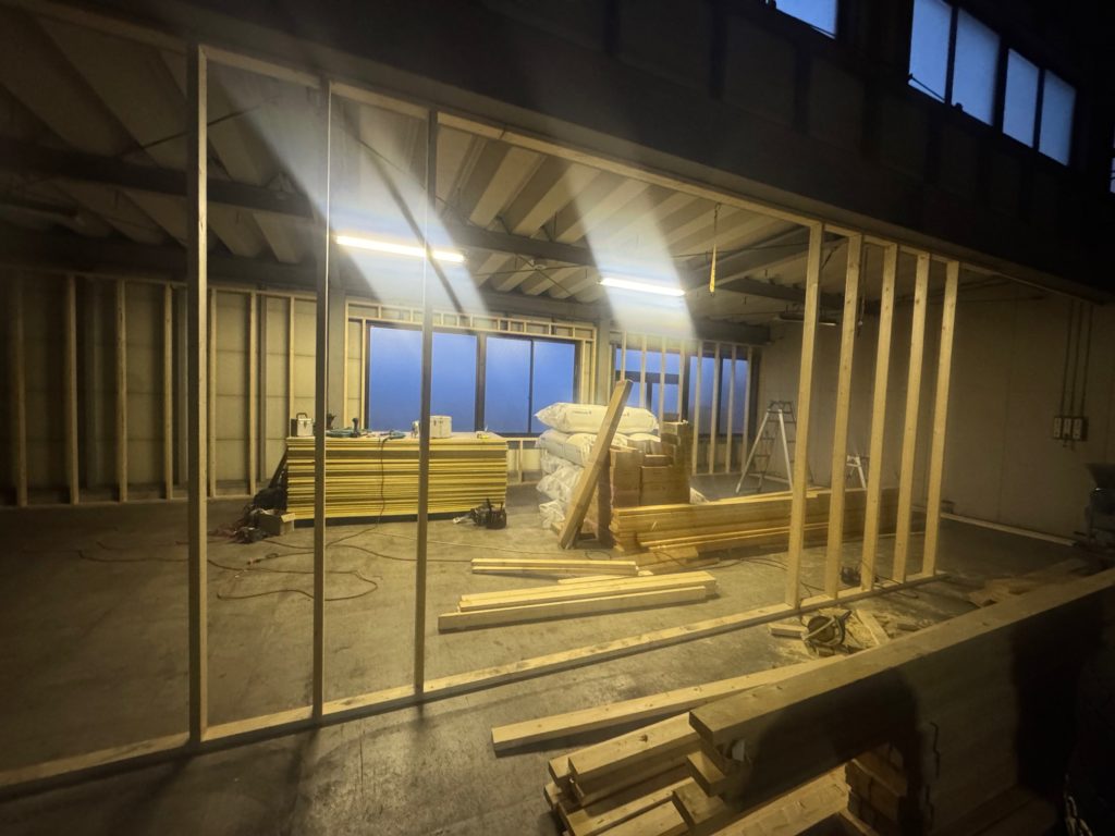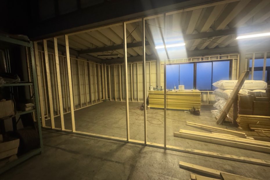 現在、社内スペースを改装し、着々と工事が進んでおります(写真は現在の施工状況です)。